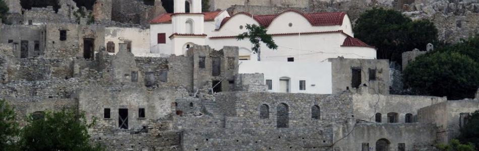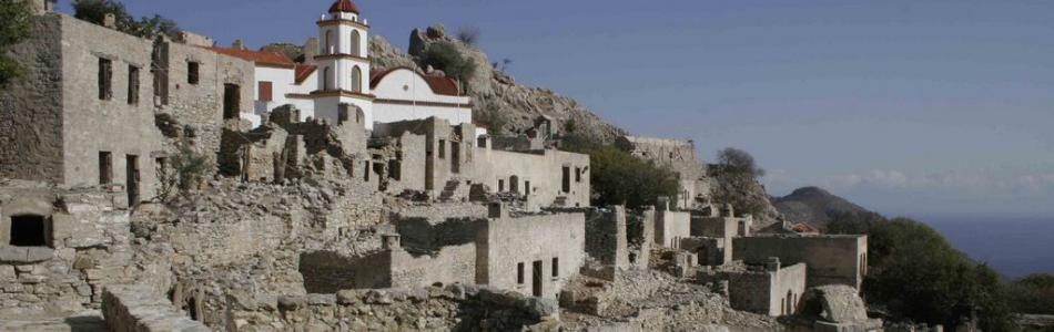 Ενα χωριό-φάντασμα βρίσκεται παραπλεύρως του κεντρικού δρόμου που ενώνει το Μεγάλο Χωριό με τα Λιβάδια, λίγο πριν τα δεύτερα. Προπολεμικά το Μικρό Χωριό δεν ήταν καθόλου μικρό, καθώς είχε πάνω από 750 μόνιμους κάτοικους. Τους μείωσε σταδιακά η μετανάστευση σε Ρόδο, Αθήνα, Αυστραλία και Αμερική και το γεγονός ότι όσοι απέμειναν άρχισαν να μετακινούνται στα Λιβάδια. Από τα 220 σπίτια του οικισμού σώζονται οι τοίχοι αλλά όχι οι στέγες και τα κουφώματα καθώς οι μετεγκατασταθέντες τα πήραν μαζί τους για να τα χρησιμοποιήσουν. Στην κορυφή του λόφου υπάρχουν τα ερείπια ενός μεσαιωνικού πύργου και αν ανεβείτε ως εκεί θα θαυμάσετε από ψηλά τη ρυμοτομία του οικισμού. Η αμφιθεατρική διάταξη των μονόχωρων κατοικιών και το δίκτυο των δρόμων φανερώνει ότι οργανώθηκε σε ενιαίο οικιστικό σύνολο πιθανότατα από τους Ιωαννίτες Ιππότες τον 15ο αι.